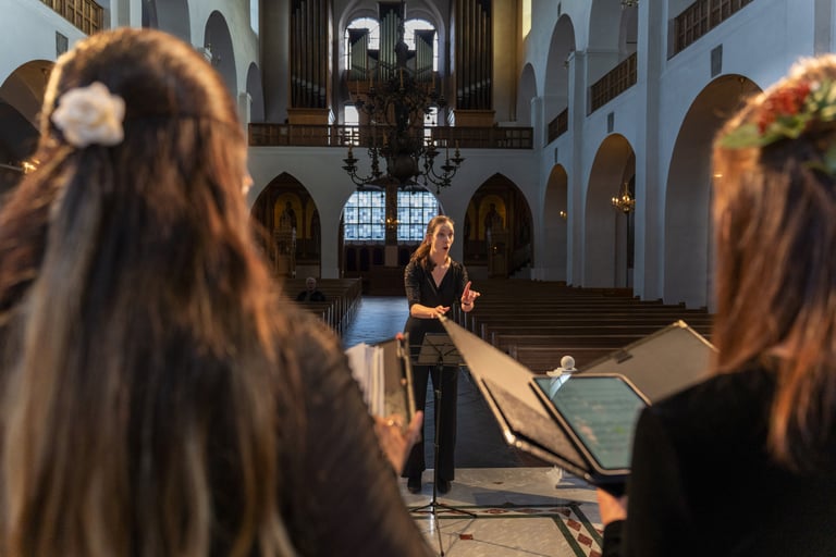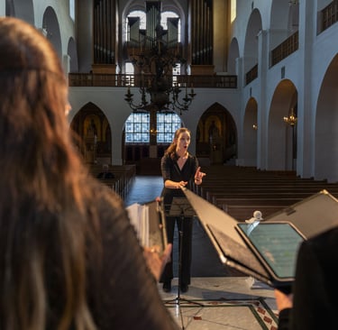 Andrea Jacobs ist eine junge, aufstrebende Chorleiterin in der Euregio. Als Dirigentin der Chöre Madrigalchor Aachen, Vocal Raise und Männervokalensemble Aachen konzentriert sie sich auf deren ständige Weiterentwicklung und die Zusammenarbeit auf Augenhöhe mit den einzelnen Mitgliedern sowie den Ensembles als Ganzes. Derzeit studiert sie in der Hauptfachklasse von Hans Leenders Chorleitung am Conservatorium Maastricht. Seit August 2025 ist sie Mitglied der Künstlerischen Leitung der Internationalen Chorbiennale Aachen.